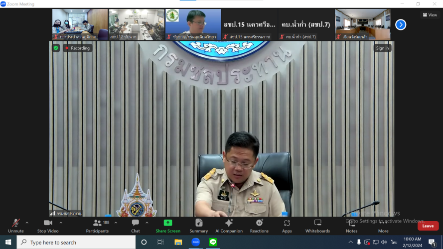 เมื่อวันที่ 12 กุมภาพันธ์ 2567 นายสุประดิษฐ์ จันทร์ดาประดิษฐ์ ผู้อำนวยการฝ่ายทรัพยากรน้ำ ได้รับมอบหมายให้เข้าร่วมประชุม คณะอนุกรรมการติดตามและวิเคราะห์แนวโน้มสถานการณ์น้ำ ครั้งที่ 7/2567 ผ่านระบบ VDO Conference พร้อมกับนางสาวสรัลพร เบญจทรัพย์ นายวีชาติ เติบกายา และนางสาวพิชยา ดวงเพชร โดยมี นายธเนศร์ สมบูรณ์ ผู้อำนวยการสำนักบริหารจัดการน้ำและอุทกวิทยา กรมชลประทาน ทำหน้าที่ เป็นประธานในการประชุม