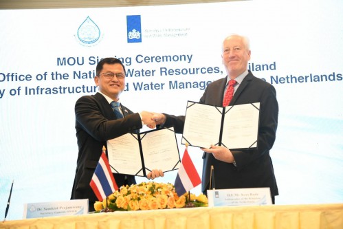 ดร.สมเกียรติ ประจำวงษ์ เลขาธิการสำนักงานทรัพยากรน้ำแห่งชาติ และ Mr. Kees Pieter Rade เอกอัครราชทูตเนเธอร์แลนด์ประจำประเทศไทย ได้ร่วมลงนามบันทึกความเข้าใจว่าด้วยความร่วมมือด้านการบริหารจัดการทรัพยากรน้ำแบบบูรณาการและการปรับตัวต่อการเปลี่ยนแปลงสภาพภูมิอากาศ ระหว่างกระทรวงโครงสร้างพื้นฐานและการบริหารจัดการน้ำแห่งราชอาณาจักรเนเธอร์แลนด์ และสำนักงานทรัพยากรน้ำแห่งชาติแห่งราชอาณาจักรไทย โดยบันทึกความเข้าใจฉบับนี้เป็นความร่วมมือกันบนพื้นฐานของความเสมอภาคและผลประโยชน์ร่วมกัน และมีสำนักงานทรัพยากรน้ำแห่งชาติ เป็นหน่วยงานกลางในการประสานงาน ทั้งนี้ยังเปิดโอกาสให้นักวิชาการ สถาบันการศึกษาและภาคธุรกิจได้แลกเปลี่ยนข้อมูลและร่วมมือกันในด้านต่างๆ ซึ่งจะเป็นประโยชน์ในอนาคตต่อไป